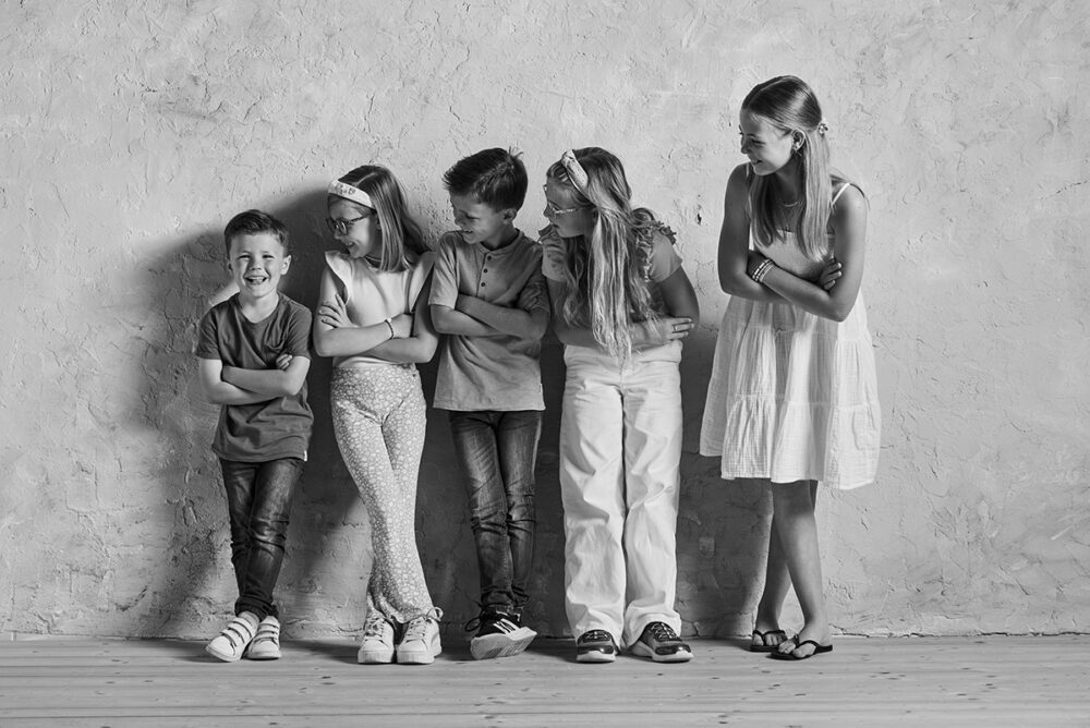 Kinderen-Rij-Zwart-Wit